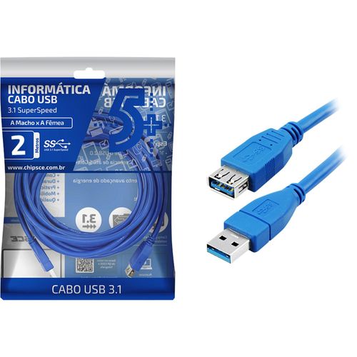Cabo de Dados USB 3.0 A Macho x USB 3.0 A Fêmea 1,8m Preto Storm