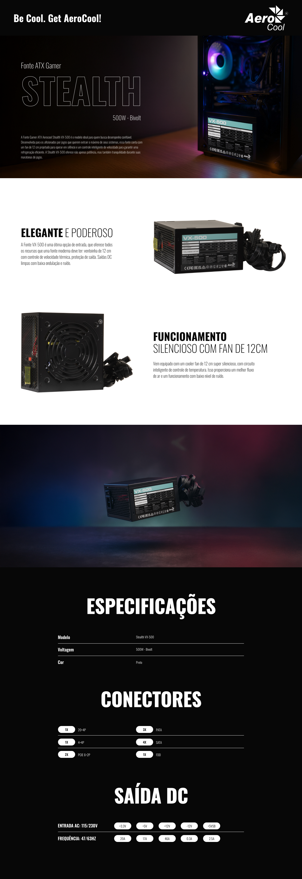 Fonte Gamer ATX Aerocool Stealth VX-500 500W Bivolt
