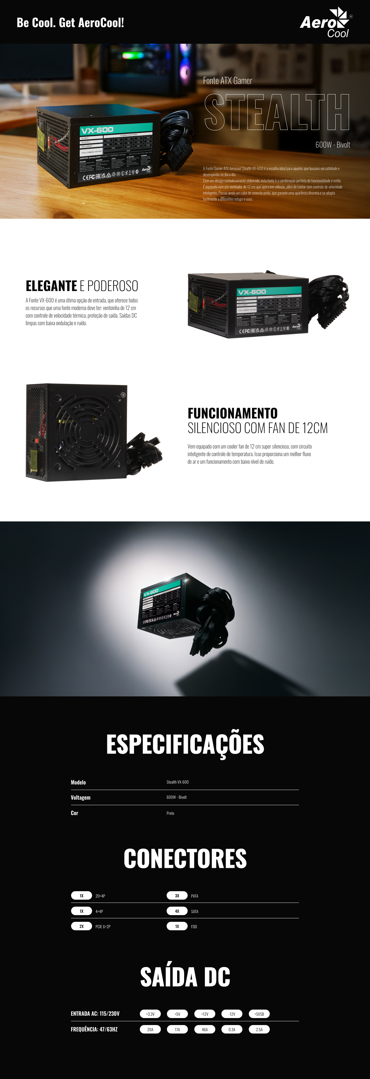A Fonte Gamer ATX Aerocool Stealth VX-600 é a escolha ideal para aqueles que buscam versatilidade e desempenho no dia a dia.